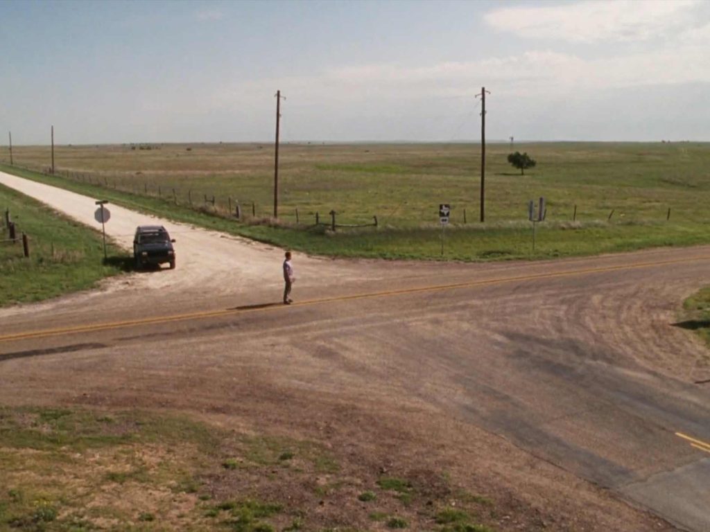 Chuck se debate hacia dónde ir, parándose en medio de una cruz formada por los caminos, y la película cierra con su mirada dirigida hacia el coche que manejaba la mujer y con una leve sonrisa de decisión tomada termina la historia.